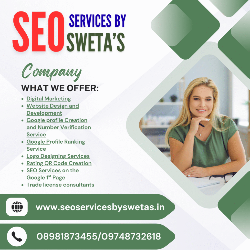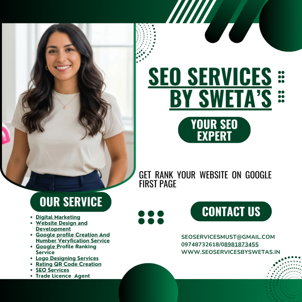 Sweta’s is a dynamic and forward-thinking digital marketing agency established in 2024, offering a complete range of services to strengthen your online presence. In today’s fast-paced digital world, being visible online is essential, and Sweta’s provides expert solutions such as SEO, website design, Google profile creation, and rank optimization to help businesses grow and succeed in a competitive market. The agency delivers result-driven digital marketing strategies including SEO, social media marketing, content marketing, PPC, and email campaigns, using a data-driven approach to help businesses reach the right audience through multiple online channels. Sweta’s also specializes in website design and development, creating responsive, user-friendly, and high-performance websites for businesses, services, and e-commerce brands to ensure a seamless experience across all devices (Website: https://seoservicesbyswetas.in/). In addition, Sweta’s offers Google profile creation and number verification services to boost visibility, trust, and local SEO rankings, handling the entire setup and verification process so customers can easily find and contact your business. Their Google My Business services focus on creating, optimizing, and managing GMB profiles to improve search ranking, map presence, and customer engagement, which is crucial for success in 2024. Sweta’s also provides professional logo designing services to create creative and memorable logos that truly reflect your brand identity and connect with your audience. To further enhance engagement and credibility, the agency offers customized rating QR code creation, making it easy for customers to leave reviews and interact with your business. Through its expert SEO services, Sweta’s improves Google rankings with keyword research, on-page optimization, quality content, and backlink strategies, focusing on local, state-level, and national SEO to maximize reach. With a strong commitment to innovation, transparency, and measurable results, Sweta’s helps businesses build a powerful and lasting digital presence.